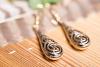 Lange, keltische Schmuck-Ohrringe, liebevoll gefertigt, aus Bronze.