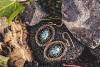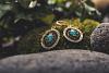 Der äußere Kreis der Ohreinhänger ist mit Ornamenten und geometrischen Mustern verziert.