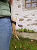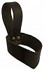 Der schwarze Hornhalter ist aus Leder und hat eine Schlaufe, die du ganz einfach durch den Gürtelziehen kannst.